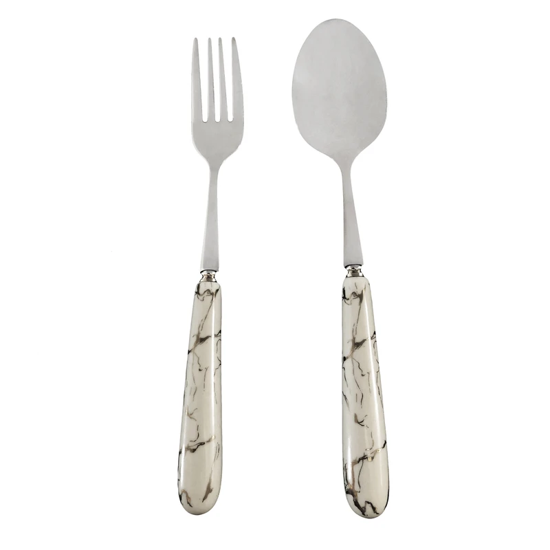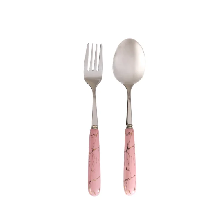 سرویس قاشق و چنگال 12 پارچه مدل دسته سرامیکی طرح ماربل کد 01